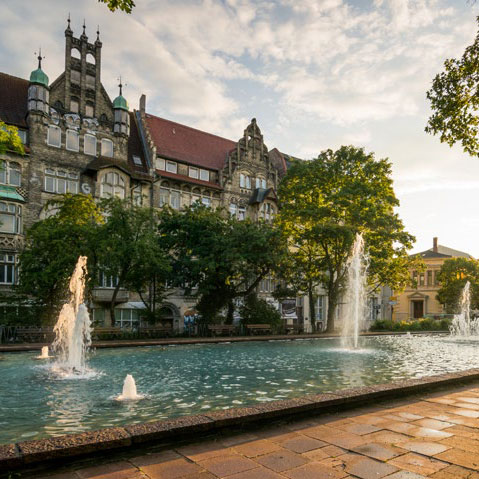 Das repräsentative Bauwerk befindet sich in zentraler Lage von Halle (Saale) mit direktem Zugang zum benachbarten Park und guten Verkehrsanbindungen.